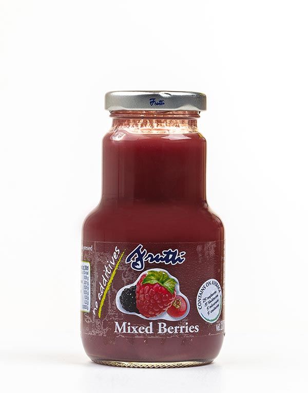 • Ingredienti: Frutta (45% di cui lampone, more, mirtillo rosso ribes rosso), acqua, zucchero di canna
